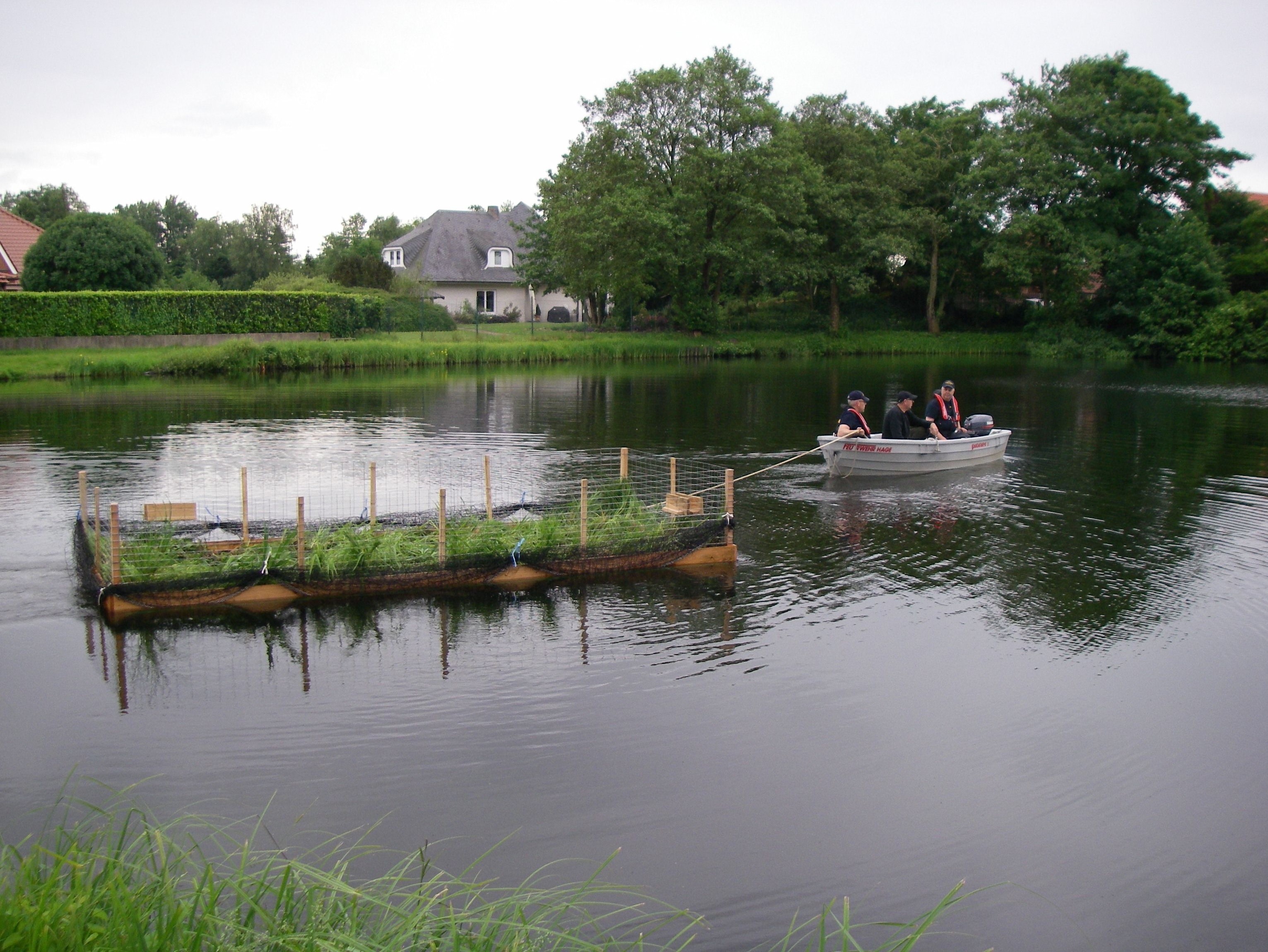 Die bereits mit Pflanzmatten ausgestattete Röhrichtinsel kann jetzt anwachsen und liefert durch die Haltbarkeit der Konstruktion einen langfristigen Nutzen.